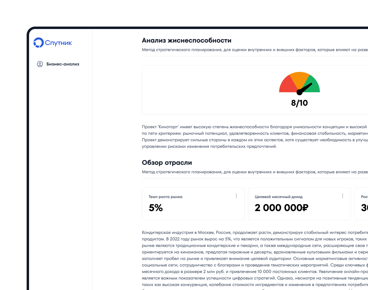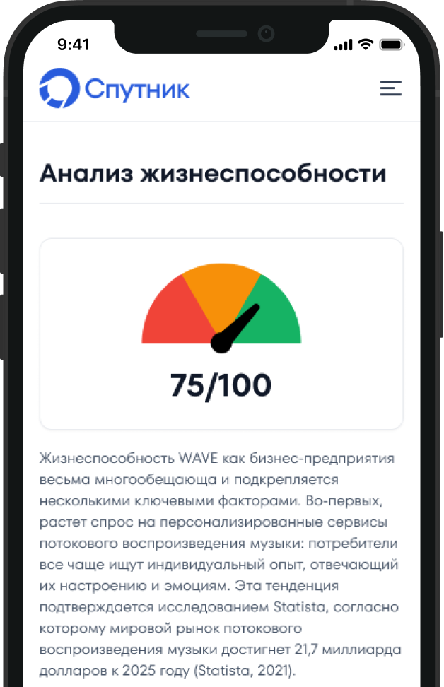 В этом процессе анализа вам может помочь Спутник — инновационный инструмент для бизнес-анализа. Представьте, что у вас есть опытный наставник, который поможет вам избежать ошибок Quibi, Jawbone, Juicero, WeWork и Pets.com. Именно таким наставником и является Спутник, предлагая комплексный подход к оценке вашей бизнес-идеи.